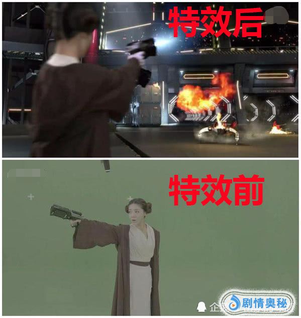 我们可以看到在剧中这个情节是在太空舱还有什么飞船里面发生的。但是吧,实际情况就是在绿布前面,真的要佩服我们唐悠悠的演技了!