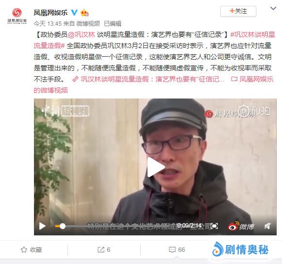 同时巩汉林还称文明是被管理出来的,作为明星艺人,不能为了电视剧的收视率就对数据进行改动,娱乐圈这个行业也是需要诚信的,作为艺人最重要的还是要守住自己的底线。