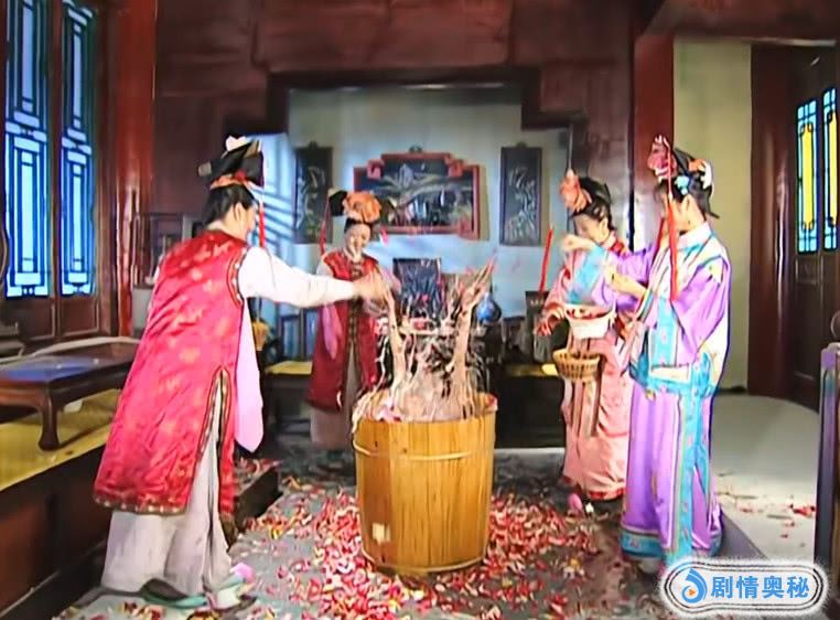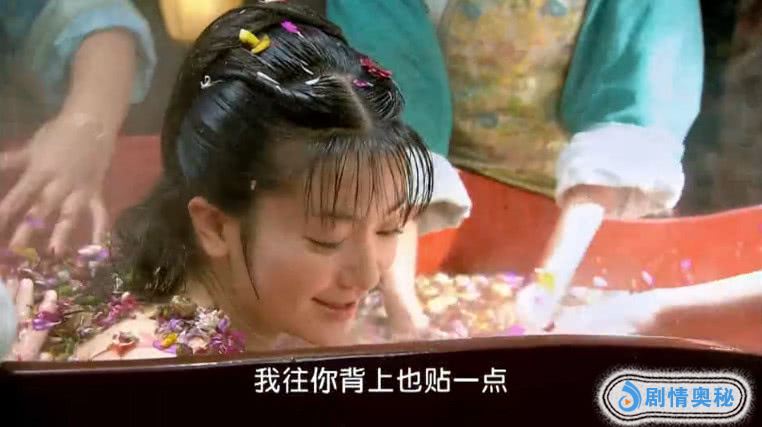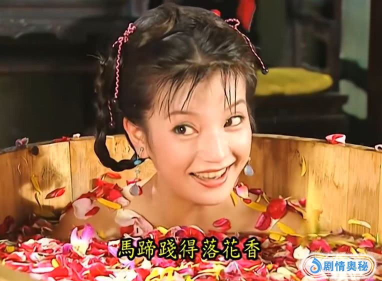 在旧版中,小燕子一边洗花瓣澡一般哼起了歌,歌儿哼完的时候,她恶作剧般地把澡盆里的水都扬了起来,弄得紫薇、金锁她们也浑身都湿了。