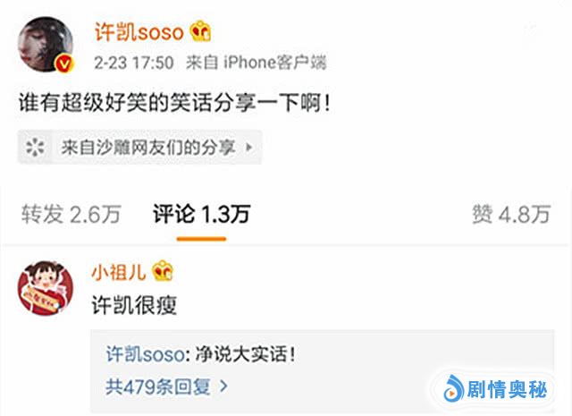 之前许凯在微博上向粉丝征集冷笑话,于2月23日发文:“谁有超级好笑的冷笑话分享一下啊”!