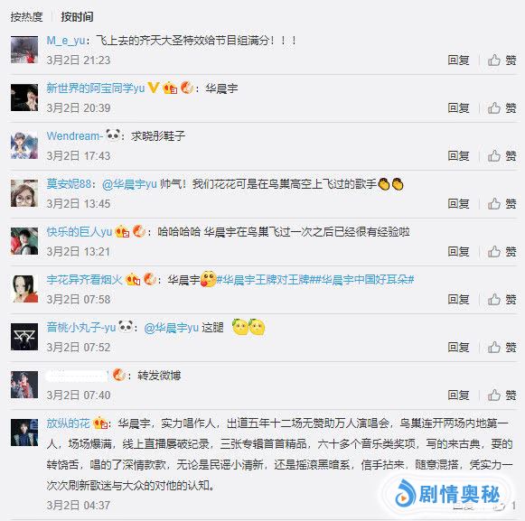 上图是《王牌对王牌》宣传海报下的评论,“花花”华晨宇存在感十足,大家都在为华晨宇加油打CALL,说他是该综艺人气最旺的综艺嘉宾也不为过。值得一提的是在最新一期《王牌对王牌》中,华晨宇对音乐的敏锐力没有让支持他的粉丝失望,面对高难度混音音乐,华晨宇可以轻松说出正确答案,这就是实力派唱将真正的实力。话说回来,如果有机会的话,你希望看到哪位明星艺人上综艺?