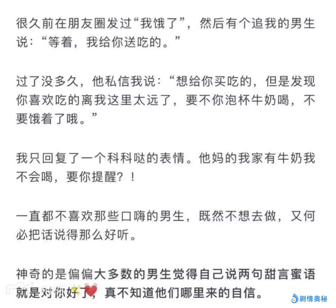 其实,这个算是一个很反面的栗子。女生们也可以这样的认为,一个人如果真的喜欢你,那么他一定会想尽办法的来对你好,来满足你。如果他只是用嘴说一说,从来不付出实际行动,那么这个人一定不是真的喜欢你!女生们要注意了!
