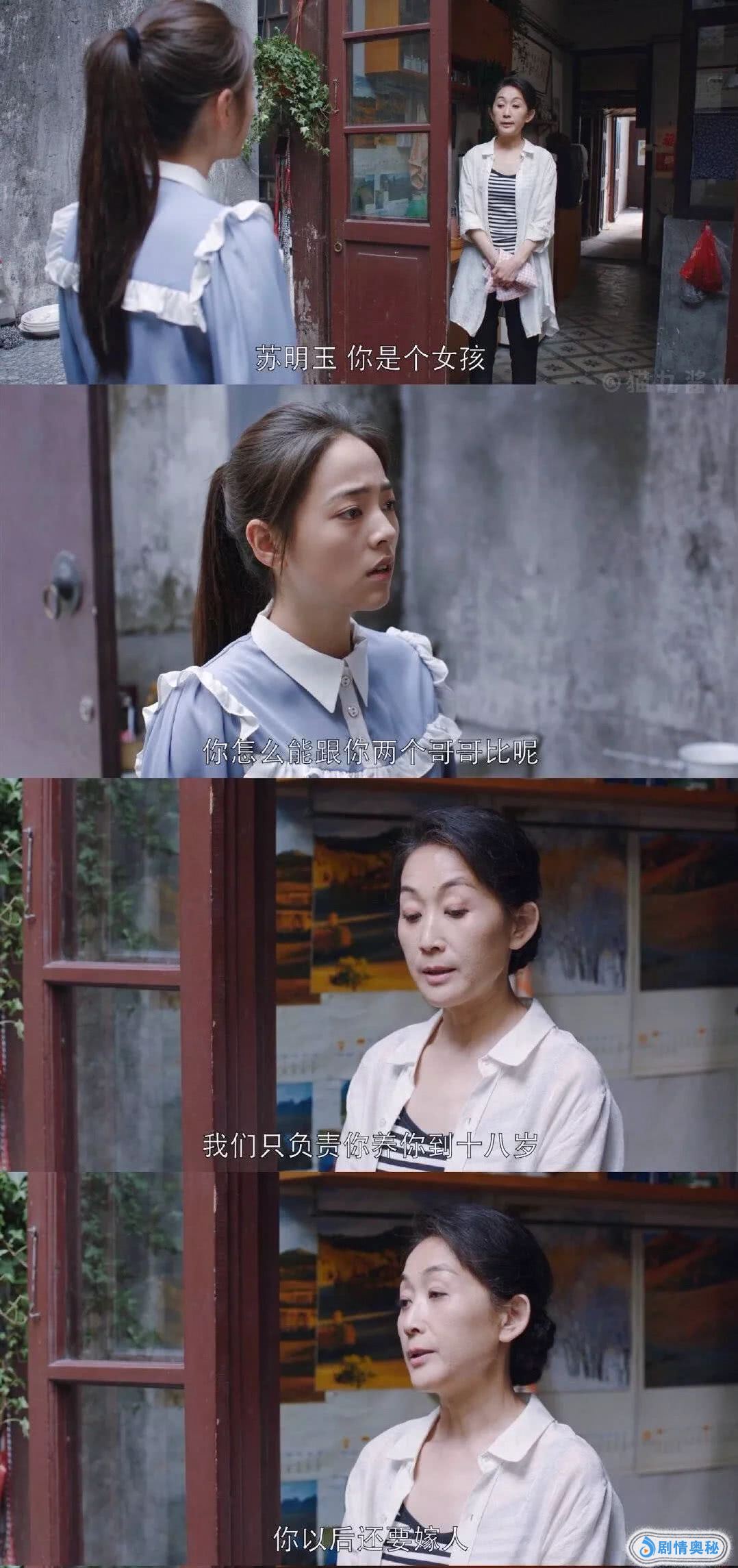 苏家父亲角色缺失,苏父是一个既可怜又可恨的人物;大哥苏明哲和二哥苏明成,是被苏母呵护着长大的,多少都有些“妈宝”,他们之后也会面临坎坷,苏家的三位男性,都不太会是让人产生好感的角色。而剧中的三位女性,苏明玉和她的大嫂吴非、二嫂朱丽,都是不同类型的独立女性,会让观众产生好感。