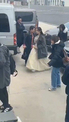录制当天,迪丽热巴身穿香槟色的长裙,外面还套了一件中长款羽绒服,看得出来天气还很寒冷。但迪丽热巴的风采并没有被羽绒服遮挡住,高挑的身材、精致的五官,在长裙的衬托下更加明艳动人;同时,迪丽热巴穿的是平底鞋,在工作人员的护送下,行色匆匆,走的非常快。