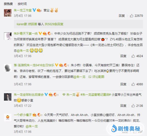 值得一提的是人气居高不下的朱一龙还带红了“朱小柿”,朱小柿是谁呢?没错,它就是朱一龙工作室,进入3月后,朱一龙工作室开始恢复营业,官博甚至首次放出朱一龙《盗墓笔记重启》正脸路透照,看到如此贴心的朱小柿,无数“小笼包”在留言区评论表白,有粉丝评论道:朱小柿!你真棒,今天有按时开工哦!还有粉丝评论道:小室带小三爷出来透气啦,感谢小室!为暖心的朱小柿点赞,也期待走上2019年电视剧品质盛典的朱一龙,欢迎回来。