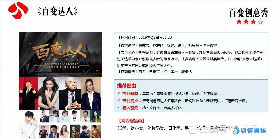 这档综艺就是《百变达人》,是一档创意竞演节目。节目每期将会邀请五位明星嘉宾,为参赛的素人选手投票,再结合上观众们的票数成为本场的冠军。在最后的节目中将直播公益嘉年华,素人选手和明星一起完成年度大秀。