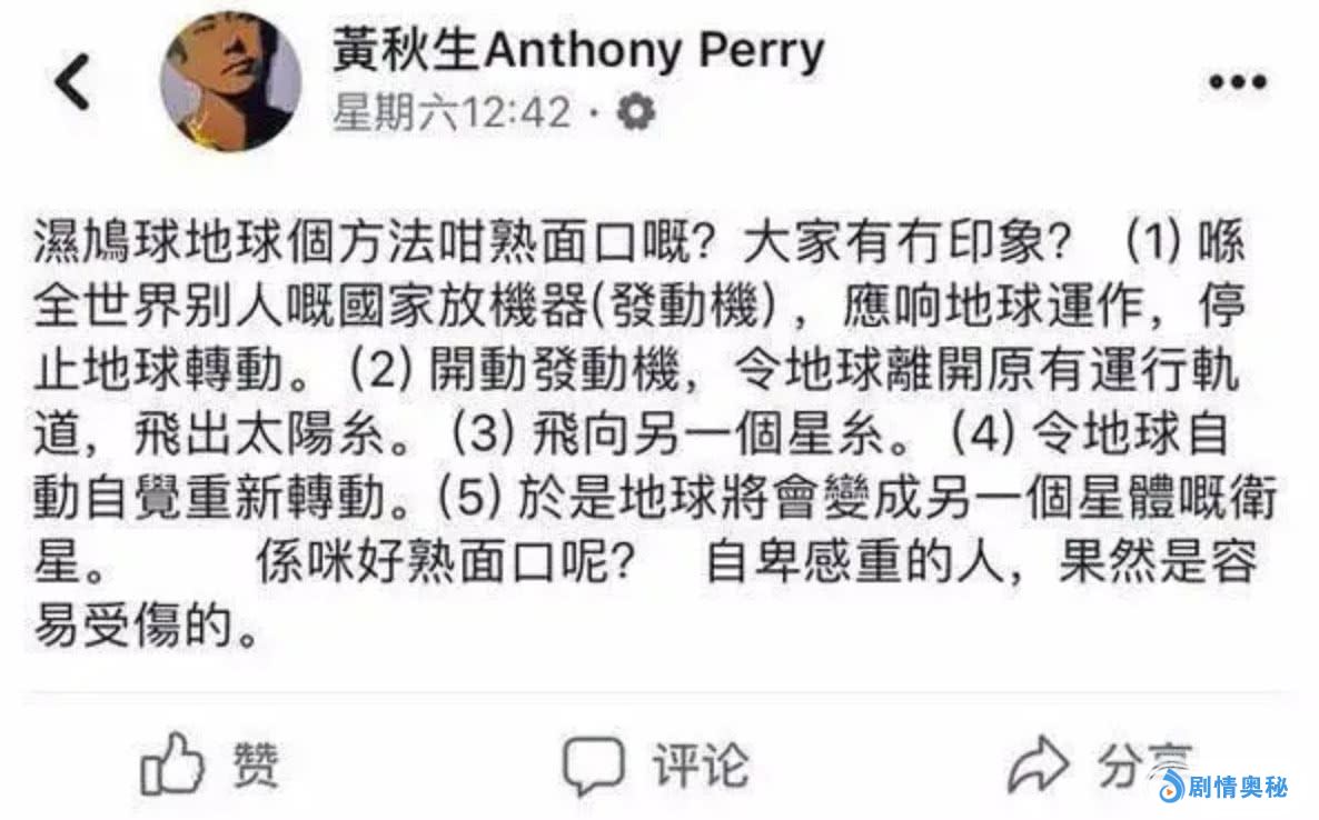 首先,来看看黄秋生在facebook关于吐槽《流浪地球》的这段话,全篇都是对电影的脏话怒骂。
