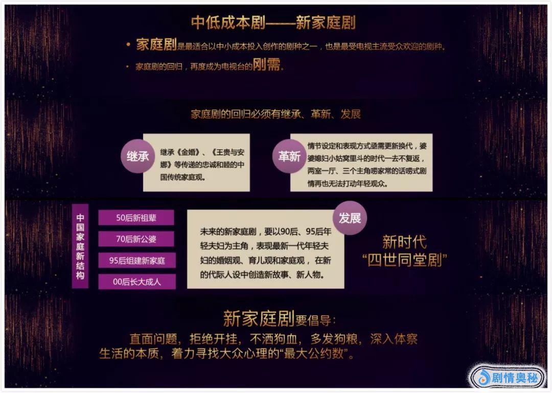 家庭剧是最适合以中小成本投入创作的剧种之一,也是最受电视主流受众欢迎的剧种。家庭剧的回归,再度成为电视台的刚需。