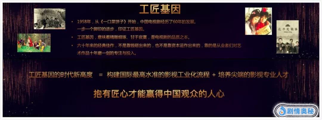 工匠基因,意味着甘于寂寞,精雕细琢,是电视剧的品质之本。六十年来的经典佳作,不是靠钱砸出来的,也不是靠资本运作出来的,靠的是从业者们对艺术作品十年磨一剑的专注与投入。
