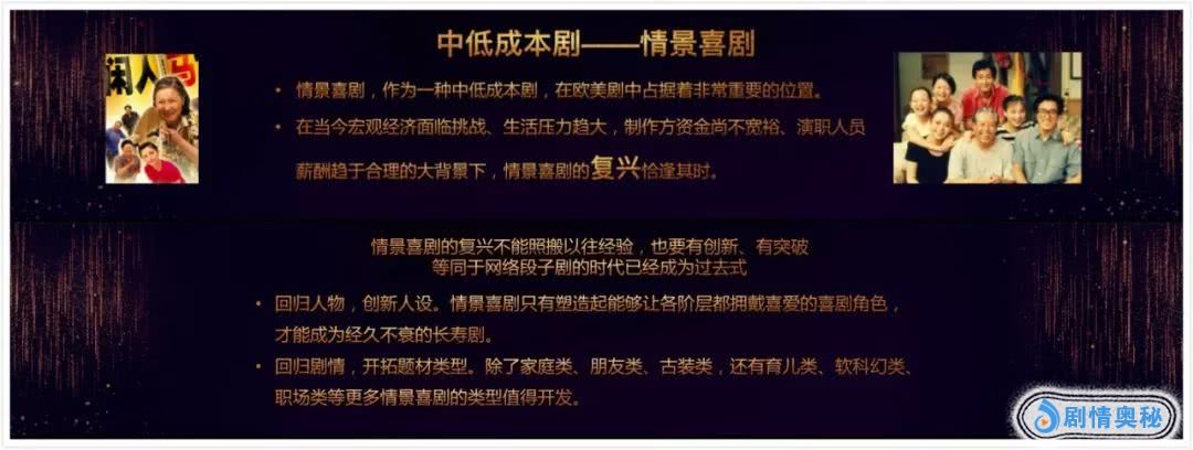 在当今宏观经济面临挑战、生活压力趋大,制作方资金尚不宽裕、演职人员薪酬趋于合理的大背景下,情景喜剧的复兴恰逢其时。