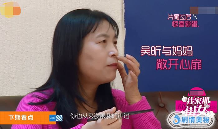 第十期节目的预告中吴昕妈妈继刚开始被节目组邀请上节目进行访谈后再次进入了节目的镜头中,这也可以说是吴昕跟自己的妈妈首次在节目中同框了吧?而这次他们是在某家餐厅里面吃饭的,可能因为前几期节目里吴昕坦露太多的心声所以吴妈妈也知道了吴昕工作中所遇到的种种挫折,吃饭的时候吴妈妈也问了很多跟吴昕感情和工作相关的事。