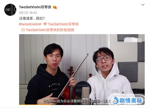 3月5日下午,华裔小提琴家Brett和Eddy在个人社交媒体上发布了一则视频,质疑鞠婧炜和马雪阳参加《湖南卫视2018毕业歌友会》时拉小提琴造假,详细说出了依据。目前,鞠婧炜还未回应此事。