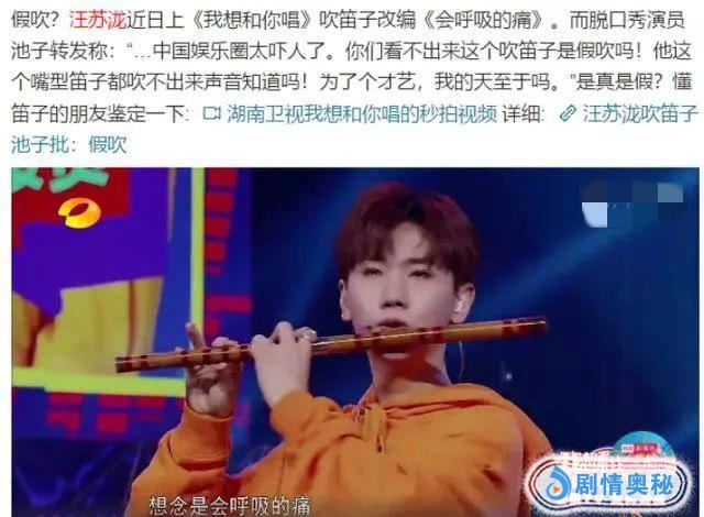 事后,汪苏泷发文承认,当时编曲伴奏是提前录制好的,又亲自录制了一段用笛子吹奏《会呼吸的痛》的视频,供大家吐槽。