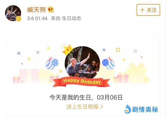 但不少关注臧天朔微博的网友都在3月6日上午刷到臧天朔的微博有动态更新,内容竟是由系统自动更新的臧天朔55岁生日的动态提醒,这让喜爱他的歌迷朋友们惊喜、意外,却又感到悲伤。