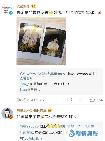 而且陈星旭对饭圈文化也不甚了解,官博送了一张只有他双手出镜的签名照,明明是想满足手控党的福利,但陈星旭却把那叫做爪子,还说看着吓人,真是应了那句话:未经人事李承鄞!不知手美陈星旭!