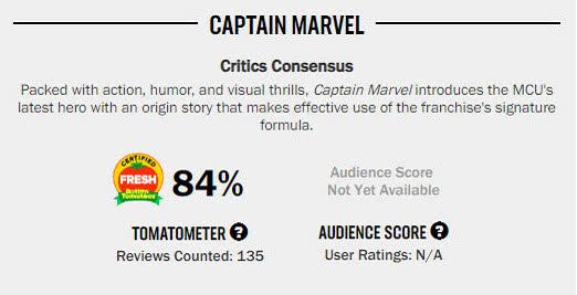于两日后在国内院线上映的电影《惊奇队长》的确是人气爆满,而如今《惊奇队长》烂番茄影评人新鲜指数84%(136个评分),在最近五部漫威出品的MCU影片里,评分暂时是最低的,随时间推移肯定还会有变化。正如之前的《毒液》一样,先前的评分很低,但是最后票房上却是取得了不错的成绩。而在这部《惊奇队长》中,也将揭晓尼克·弗瑞局长的眼睛之谜。