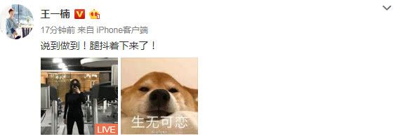 今日(3月6日)王一楠便在微博晒出自己健身的动态,并附文表示:“说到做到!腿抖着下来了!”