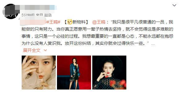 在采访中,王鸥表示: “我只是很平凡很普通的一员,我能做的只有努力。当你真正愿意用一辈子热情去坚持,就不会觉得这是多难熬的事情,这只是一个必经的过程。我想最重要的一直都是心态,不能永远都在抱怨为什么没有人赏识我。放开这份纠结,其实你就会过得快乐一些。”