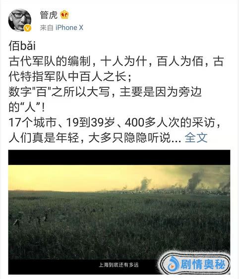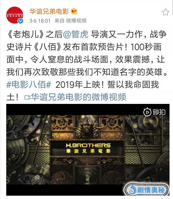 不过,电影《八佰》的导演管虎在微博上写下的一段宣传语,倒是能从中看出他的真诚,以及对这部片的倾力付出。管虎写道:“项目三度重启,筹备499天,拍摄230个日夜,1500多个台前幕后的工作人员。如果没有不离不弃、一路同行的战友,今天应该是未知的梦境。”