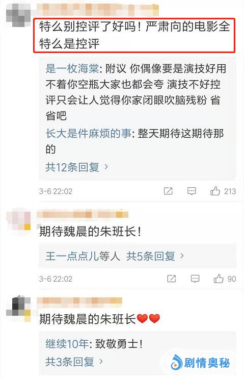 不过,在该预告片的微博评论区,却是清一色的粉丝控评,几乎每一条评论都写着“很期待谁谁谁”等字眼。此现象很快引发路人网友的不满,有网友表示,像这种严肃题材的电影,粉丝还来控评,真是让人反感,最终将网友彻底激怒。