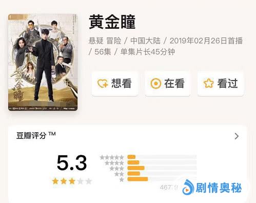让我们欣慰的是张艺兴的努力没有被辜负,昨晚《黄金瞳》的豆瓣评分跌至5.2分,《黄金瞳》的网评还会持续下滑吗?答案是否定的,今晚小编注意到《黄金瞳》的豆瓣评分开始回暖,截止小编发文时间,《黄金瞳》的豆瓣评分已经上升至5.3分,而《黄金瞳》尚未更新过半,我们有理由相信随着剧情的深入,《黄金瞳》的豆瓣评分有机会回归及格分6.0分,这是对张艺兴演技的最好肯定。