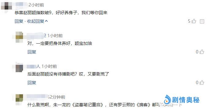 看到颖宝凭借破9的演员评分顺利联演员榜第一,粉丝评论暖人心,有粉丝评论道:恭喜赵丽颖指数破9,好好养身子,我们等你回来。有粉丝评论道:对,一定要把身体养好,颖宝加油。有粉丝评论道:后面赵丽颖没有待播剧吧?哎,又要剧荒了。还有粉丝评论道:什么剧荒啊?朱一龙的《盗墓笔记重启》,还有罗云熙的《掮客》都可以期待一下!