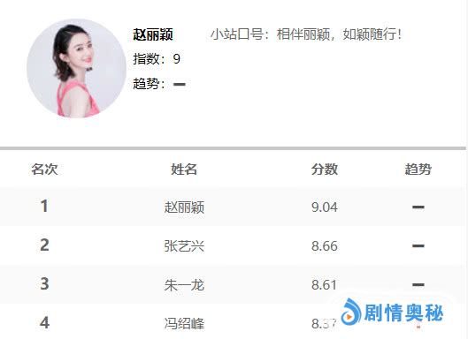最后让我们再次恭喜赵丽颖在没有新剧开播的情况下,演员评分顺利破9,并且蝉联演员榜第一,有演技有人品,赵丽颖的观众缘值得肯定,颖宝加油,等你回来。