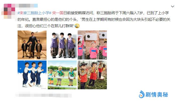 但是对于作为父亲的宋一国来说就显得有些头疼。原来宋一国在跟媒体说完三兄弟要上小学的事情后,还一副十分无奈的表情。宋一国表示,对于他们三个一起上小学,反倒害怕他们要去打群架了。男孩子在读书时期也会因为身形壮瘦的问题而开始打架来一个决一胜负,说不定还会有小伙伴在身边“劝说”打回去吧!总之,这一切都有可能的事情,都让宋一国成为了要担心的对象。