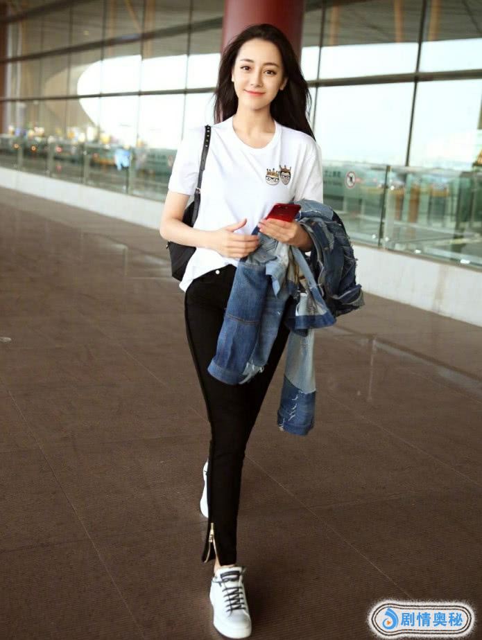 迪丽热巴的打扮真特别,意外穿成潮流,而她在里面穿了一件白色T恤,她搭配了一条黑色紧身裤,她的裤子比较紧身,所以显得她的身材超级好的,搭配了一双白色板鞋,看着比较休闲呢!