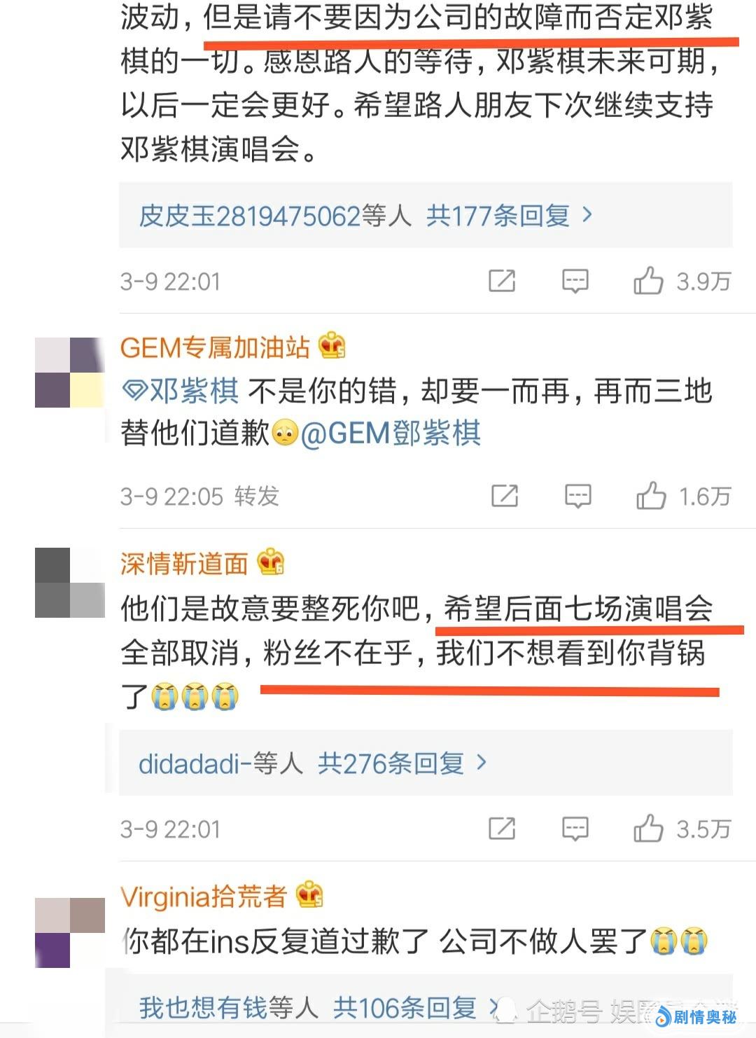 针对这场不明真相的意外事故,很多粉丝表示,演唱会取消也没关系,不想再看到邓紫棋背锅。一路靠实力走出来的邓紫棋,却遇上这么坑的公司。期待邓紫棋顺利解约,开启下一段新天后的旅程。(图片来自网络)