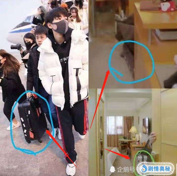 而在门口我们也发现了银色的行李箱,这不用想,是王源的行李,但是在桌子下面却还有一个黑色的行李箱,这可是让粉丝们起疑心了,也感觉这个箱子很眼熟,后来才发现,原来黑色的是王俊凯的箱子。