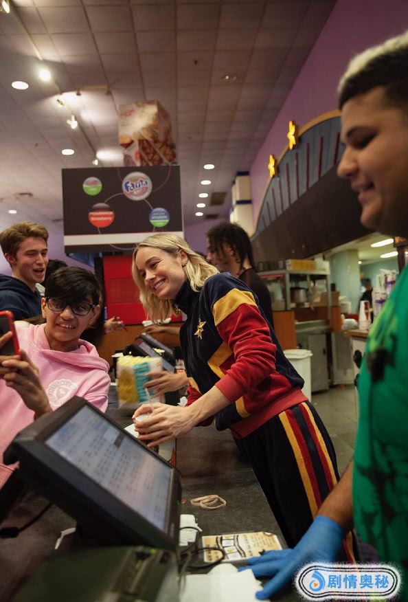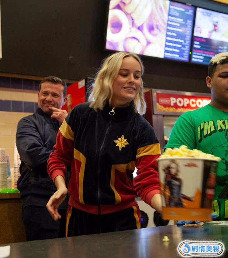 额,作为全漫威宇宙最强的女英雄,《惊奇队长》震撼来袭,当然了,演员布丽·拉尔森也因此大火了一把,而最近,国外的影迷可是有福气了,没错,惊奇队长在前阵海外首映的时候突然现身电影院,与诸多前来观影的漫迷一道合影互动,化身成为电影院卖品服务员。布丽·拉尔森本人亲自空降影院,在电影院前台为影迷们售卖爆米花和汽水,并且在电影开场的时候进入影厅与粉丝打招呼。