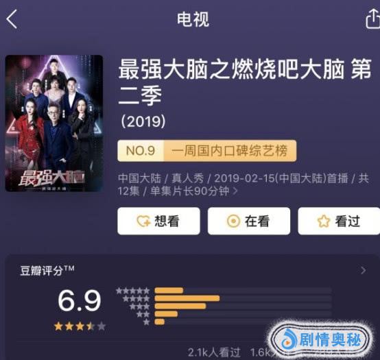 2019年,新一季《最强大脑》再次如期而至,依然在网上掀起了一阵讨论热潮,但值得一提的是,口碑开始狂跌,豆瓣评分仅为6.9。