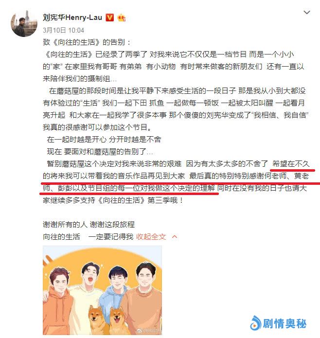 《向往的生活3》官宣,刘宪华发文告别,离开原因引发热议,对此你有什么看法,欢迎评论!