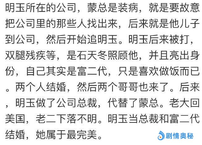 还好明玉最终收获了幸福,她释然了,她有了石天冬的宠爱,整个人变得更加明朗了,石天冬的一句话让小编深感意外“你可以选择不原谅,但你也可以选择放下”,苏明玉最终放下了。