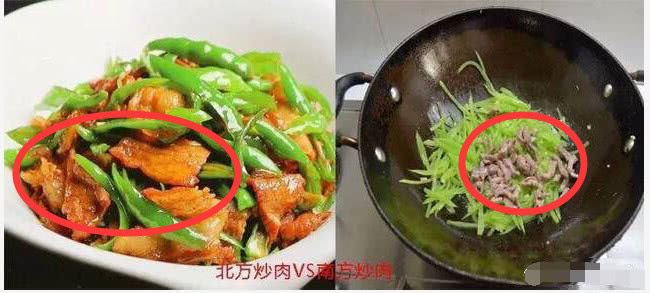 最后就是炒肉了,北方菜的炒肉是特别多肉,而且他能大,能让吃感觉吃两口之后就不想吃了,而南方就是特别少,但是口感却特别好吃,这点让人特别喜欢。北方菜VS南方菜,前后的差距在于“它”就是“肉”了,南方的肉少但是味道非常好吃。然而网友纷纷表示北方的太难吃,但是也有许多好吃的,小编认为每一个地方的口味不一样,自然喜欢的也不一样,大家怎么看?欢迎来评论啦!