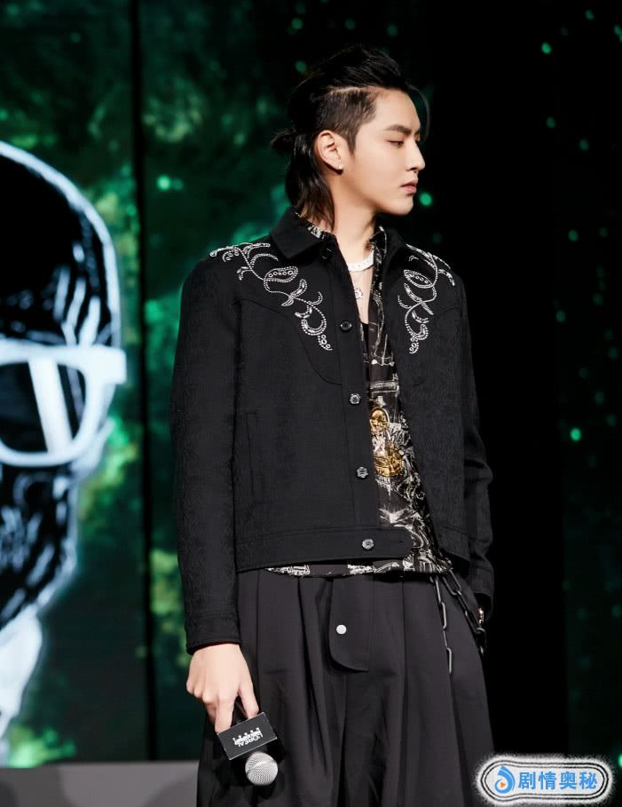 吴亦凡很多都是穿黑色的衣服,像他这次穿的就是一套黑色的衣服,穿起来十分有质感,上面穿了一件有银色印花的外套,穿上去很时尚的感觉,搭配了一件黑色的打底衫,更加时尚了,这条裤子还比较休闲的感觉。