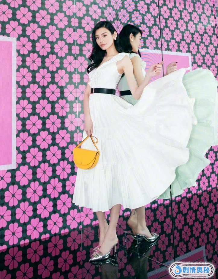奚梦瑶还有这样的打扮,她穿了一条粉色的裙子,这裙子是很优雅的,搭配了一双银色高跟鞋,更加好看了,手上戴着的是金色的手镯,看上去很贵气的样子,搭配了优雅卷发,增加了几分淑女感。