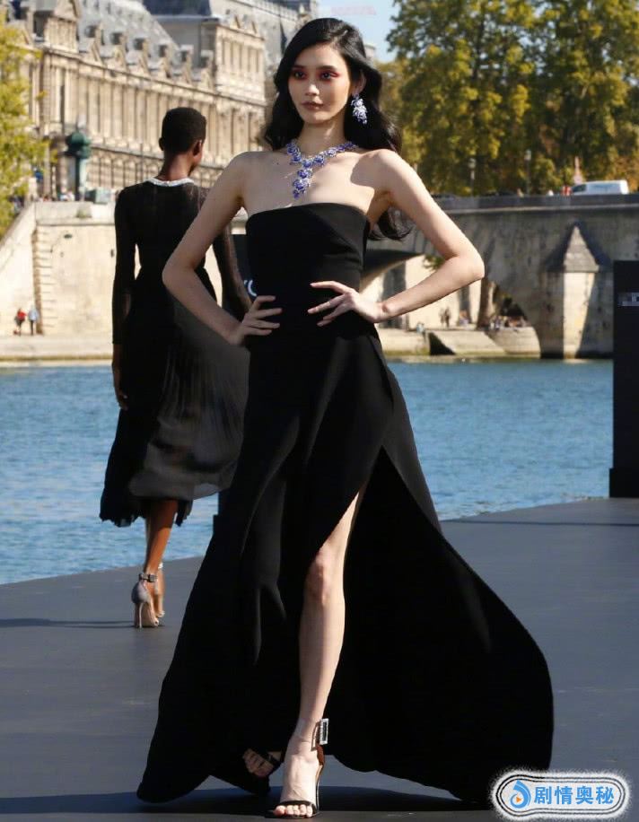 奚梦瑶的超模身材就不用说了,她的身材简直就是九头身的感觉,一身都是黑色的衣服,穿上去很有气场,还搭配了一双黑色一字高跟鞋,看上去拉长了腿型,这裙子是很长的,所以显得气场十足。