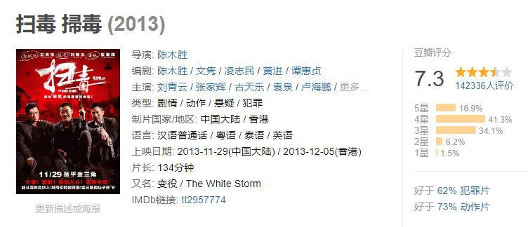 我们最后看到的是两部电影的豆瓣评分,前者豆瓣评分高达7.3分,好评率来到58%,超高口碑不容置疑,2013年上映的《扫毒》好过62%的犯罪片,以及73%的动作片,那么《扫毒2》能取得怎样的网络评分口碑呢?让我们拭目以待吧!这部由古天乐刘德华时隔多年再度携手演绎的大作,你会去看吗?