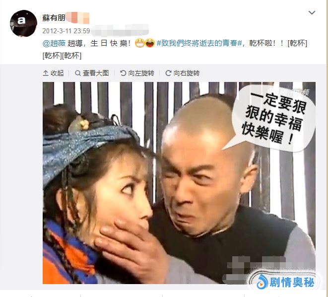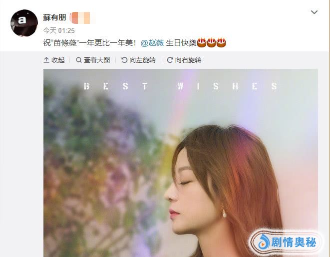 今年赵薇的生日苏有朋照样没有落下,在今日凌晨一点多,苏有朋晒照替好友赵薇庆祝生日,,他写道“祝苗条薇一年更比一年美,生日快乐。网友们也纷纷为赵薇送来祝福,两人深厚的感情在大家看来也是坚不可摧!现在已经是还珠格格播出的第二十年了,两人因戏结缘一直到后来一起合作开公司,二人之间一直有着不断地联系