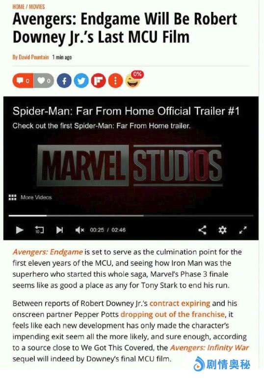 近日,钢铁侠小罗伯特唐尼发文称,在《复仇者联盟4》中,将是钢铁侠最后的一次亮相了,而大结局也正会虐心万分的。这几日热映的《惊奇队长》的确是收获了不菲的票房,在未来的漫威宇宙中,惊奇队长或许会成为整个复仇者联盟的统领人,这不仅仅是漫威的布局,更是尼克弗瑞的布局了,作为BP机而引入整部故事,MCU这十年以来已经做的够意思了。而漫威,作为成年人的一部部动画片,却也是收获颇丰。