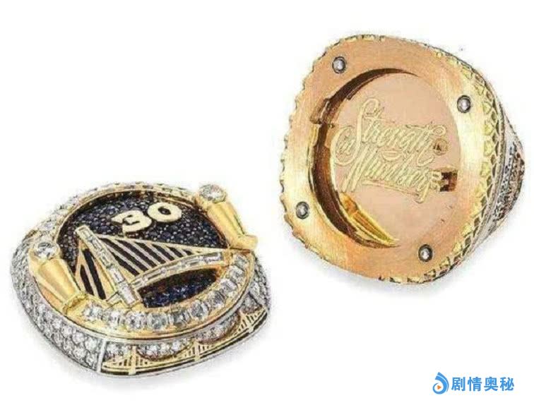 然后就是18勇士再次拿下冠军的指环,这个指环比他们第一次拿到的指环更美,同样的设计跟号码,唯一不一样的就是这个指环上面有很多蓝宝石,而且上面还有他们的口号。
