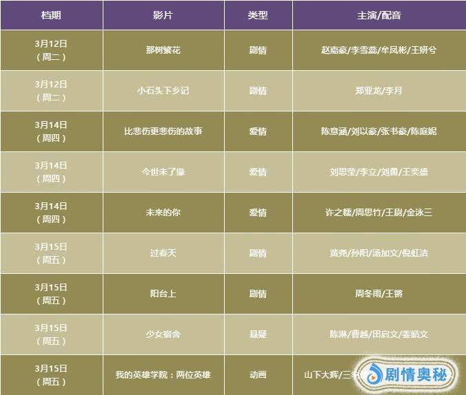 本周四(3月14日)是白色情人节,当天有三部爱情片上映。