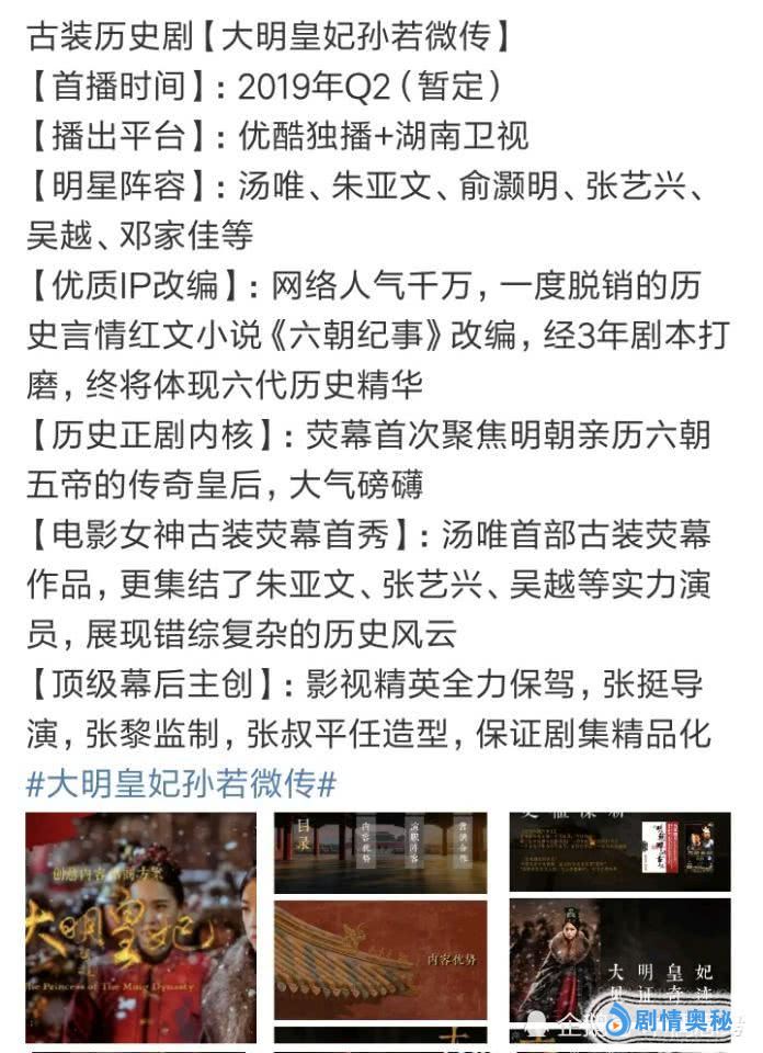 近些年,古装题材的作品可以说是备受观众们的喜欢,从《甄嬛传》到《延禧攻略》基本上都获得了很不错的收视率和口碑。而近日有一部古装历史题材的新剧已经有了上线的消息,那就是《大明皇妃孙若微传》了。