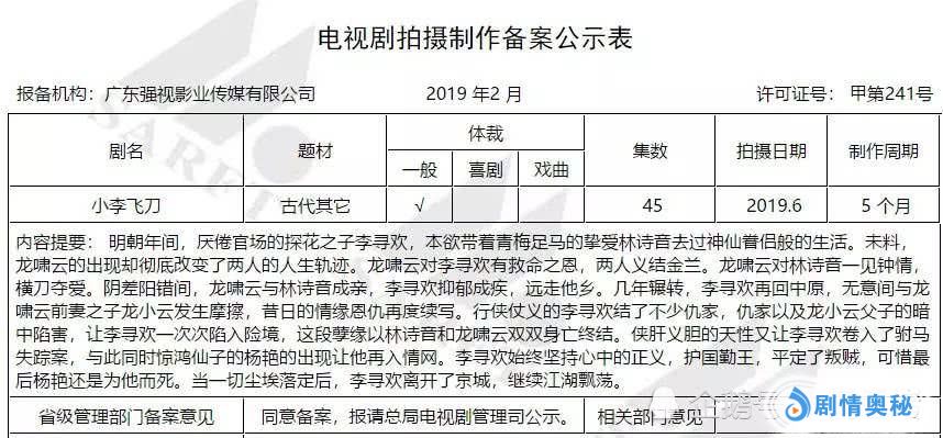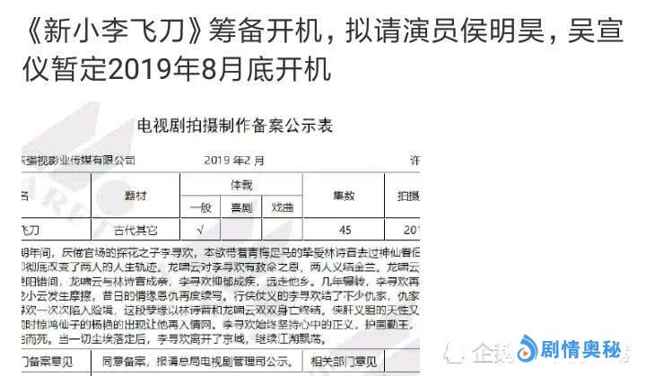 最近广电总局公布了一批新电视剧的拍摄制作备案公示,其中有一部剧可以说是引起了网友热议,那就是《小李飞刀》了。这部剧是改编自古龙的武侠小说,在2001年上线了焦恩俊、吴京、萧蔷、贾静雯、范冰冰等主演的版本。