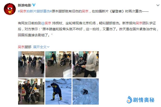 据媒体爆料,吴京近日在拍摄《攀登者》新片时腿部旧伤复发被急送到国外就诊,而昨日吴京刚从国外就诊完回国后第一时间就返回剧组继续进行拍摄任务。从路透照中看见吴京坐着轮椅手持拐杖背后有助理推着轮椅和拿着行李,这也是网友们第一次看见吴京带助理亮相机场的情景。可见吴京的伤势非常严重已经无法自行走动了,很多网友看到吴京身体再亮红灯开始担心他的身体状况,网友们都呼吁吴京不要太拼命多注意保重身体!
