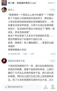 最近,一首写给易烊千玺的民谣《数星星的男孩》在酷狗音乐一夜走红。“想借你一个我在山上放牛的童年”,温暖的声线,唱着戳人心的歌词,句句直击人内心最柔软的那个角落~酷狗评论区千纸鹤(千玺粉丝名)刷屏,道出了易烊千玺的不易:穿梭在各种辅导班,“只有汗水泪水和老师数的拍子”,“他这个年纪承受了太多本不该承受的东西”......
