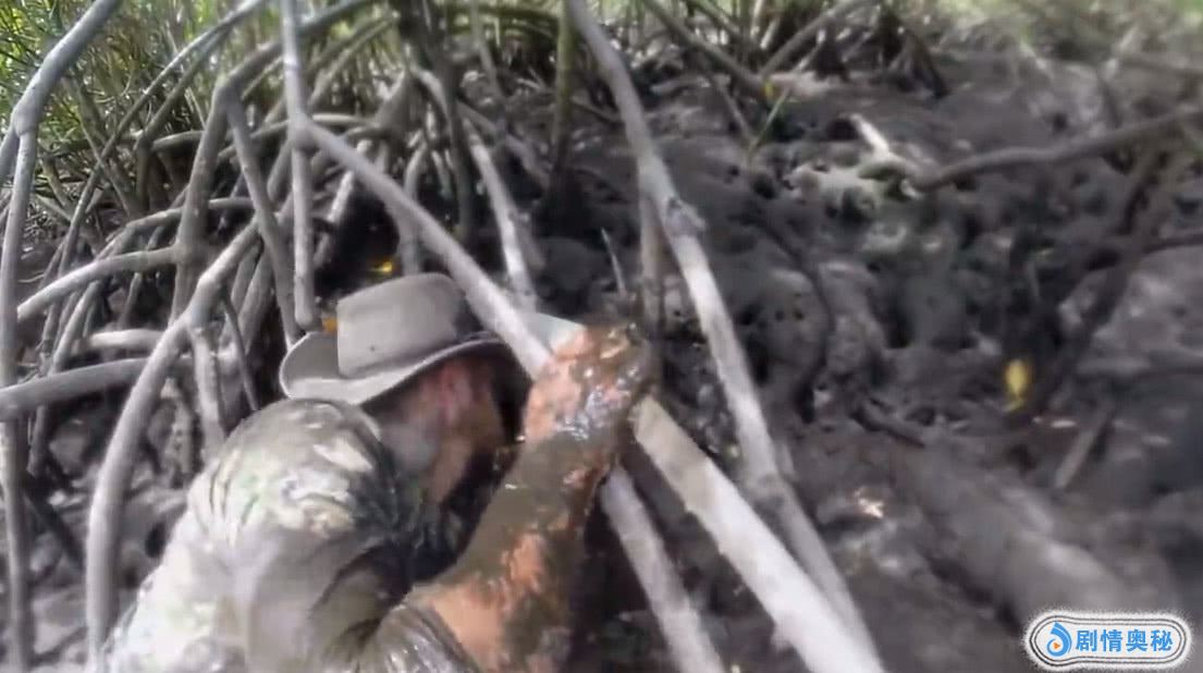 这期节目的地点在泥泞的红树林地区,生存者必须靠着现有的条件,确保自己能在这里生存至规定的时间。从视频中看见,男子在泥滩上寻找食物时,突然,他发现了一个洞穴。本能反应觉得,里面应该有什么东西。之间他趴下身,用耳朵贴在洞穴口听声音。随后,他便直接将手伸了进去。听见沙沙的声音,用手碰还能碰到类似壳的东西,会是什么呢?