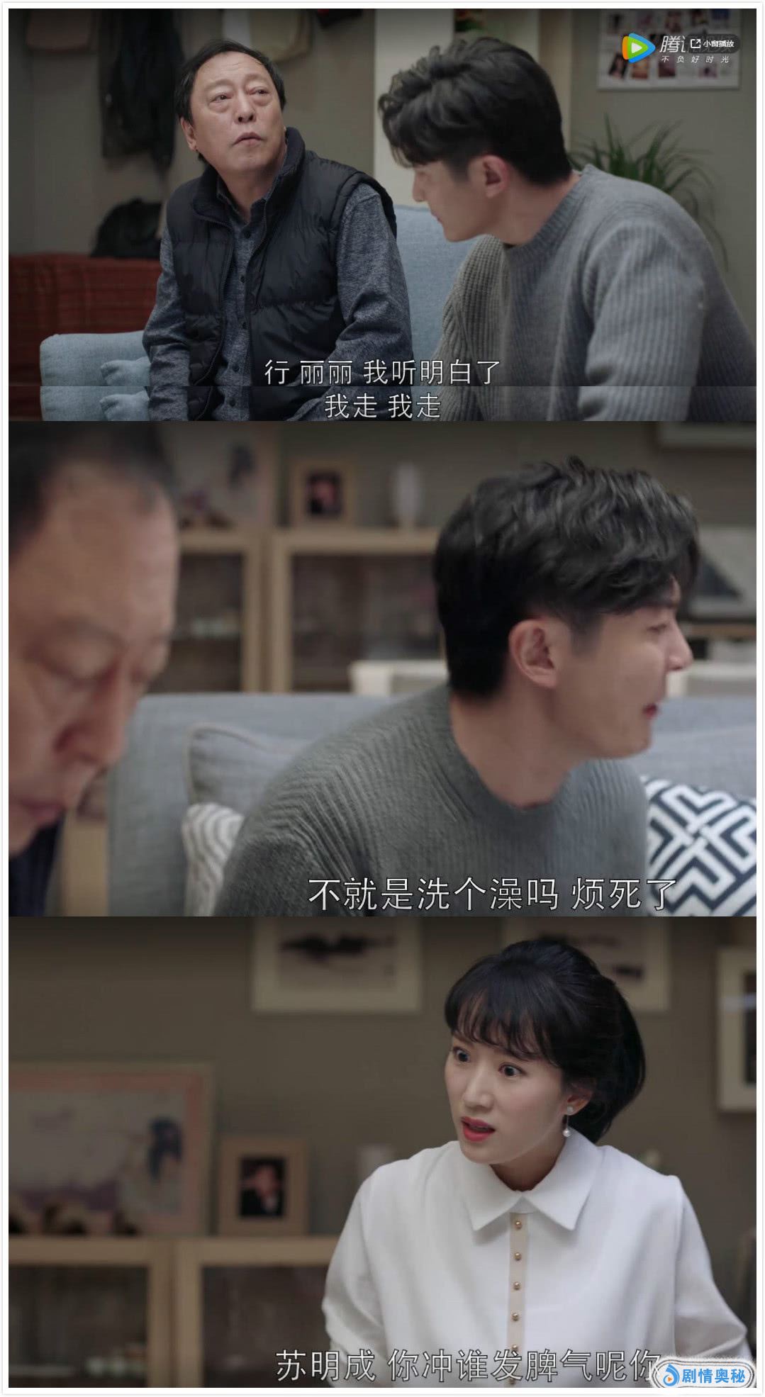 饰演苏明成的郭京飞则愣是将一个不讨喜的角色演出了几分可爱。苏大强假装睡觉拒绝和他当面对质时,郭京飞的一句“今夜你无眠,爸”瞬间将家庭矛盾变成了情景喜剧。